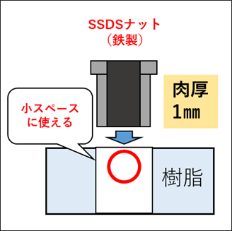 【小スペースに使える薄肉型鉄製インサートナット SSDSナット】を見る